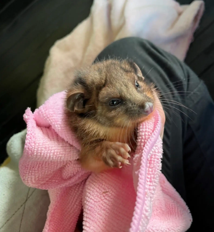 When Erin placed him inside a cozy felt pouch, the little possum finally relaxed. Within minutes, he drifted into a deep, peaceful sleep.