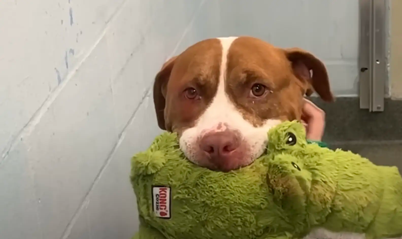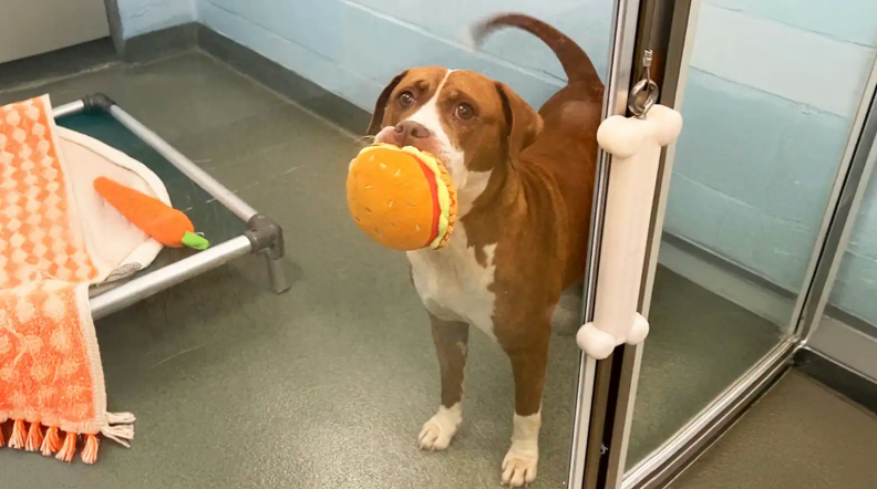 Peanut didn’t just hoard her stuffies — she shared them. Every time someone walked past her kennel, she’d rush to the door, toy in mouth, offering it as if to say, ‘Hi, I’d like to be your friend.’
