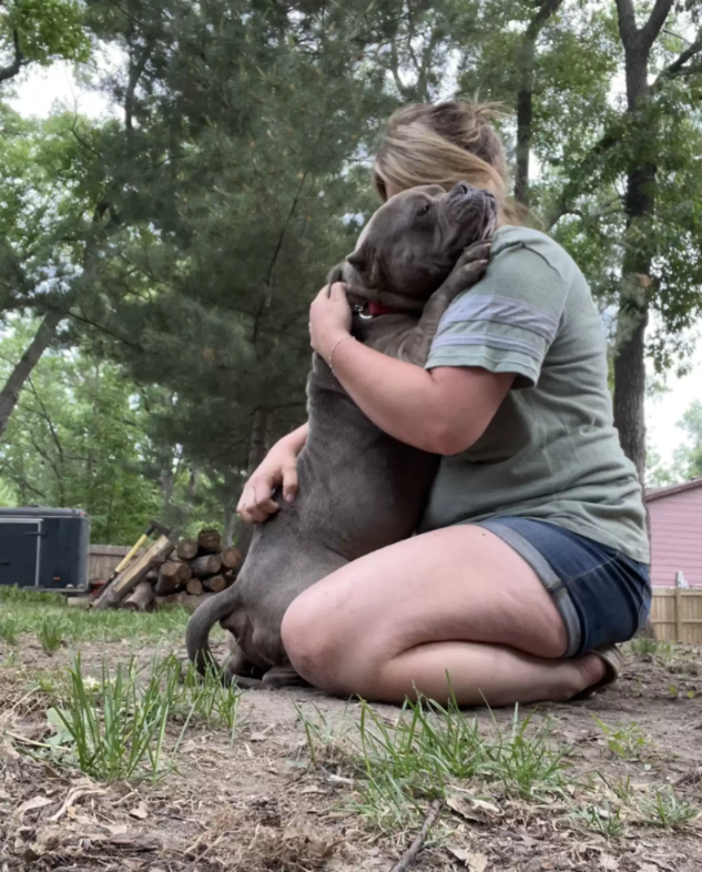 Snuffy arrived safely in her care — and quickly made it clear just how grateful he was. From day one, he clung to Easley, showering her with hugs and affection.