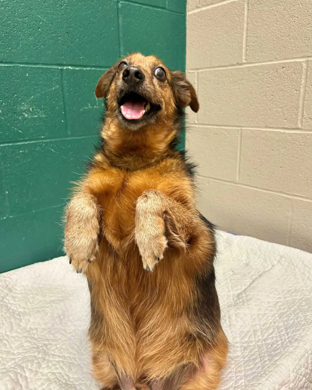 That’s when staff noticed his signature move: an unprompted, enthusiastic “sit pretty.”