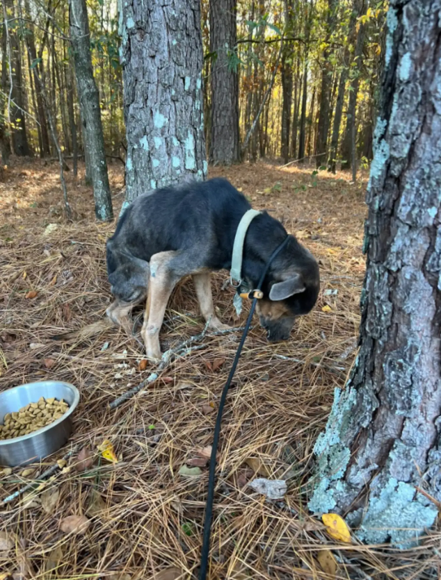 On a cold, rainy day in early November, a skeletal dog lay curled up in the woods off a back road in Jasper County.