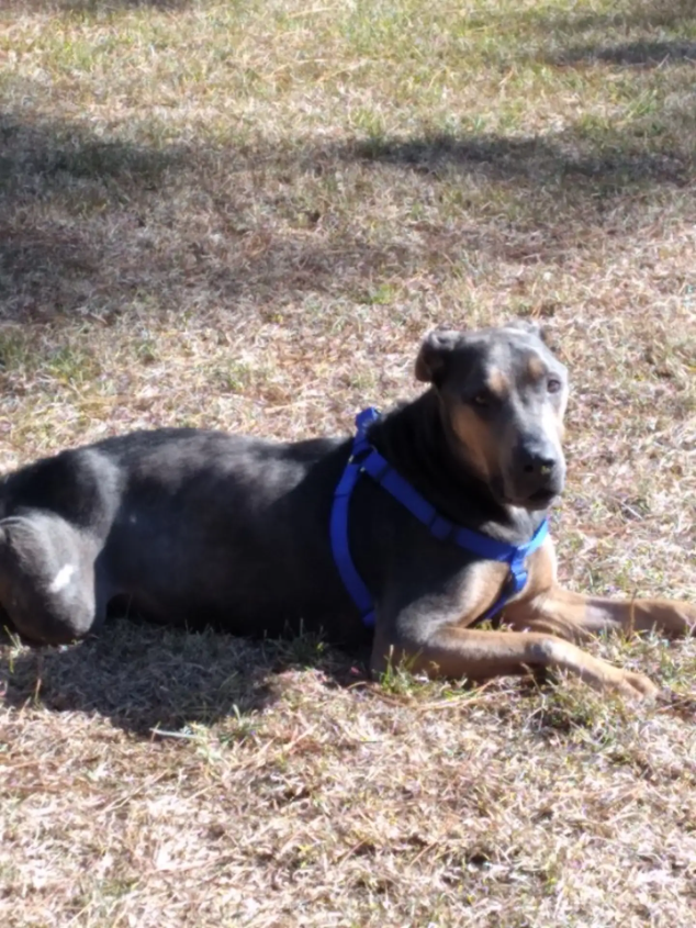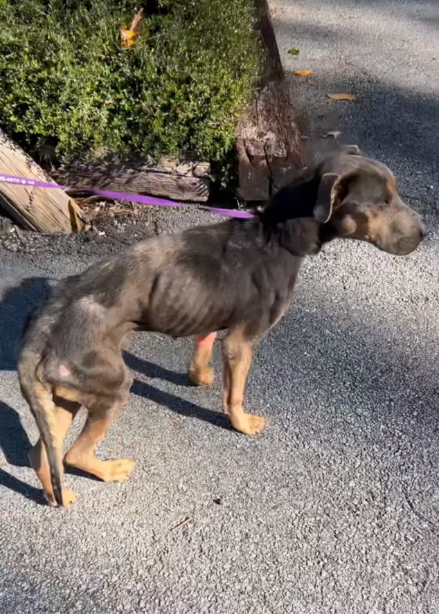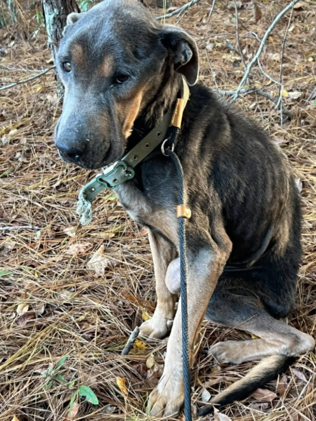 Tests revealed even more hardship. Rhodey was about a year old but weighed only 41 pounds — roughly half of what he should have been. He was anemic and heartworm positive, though too weak to begin treatment immediately.