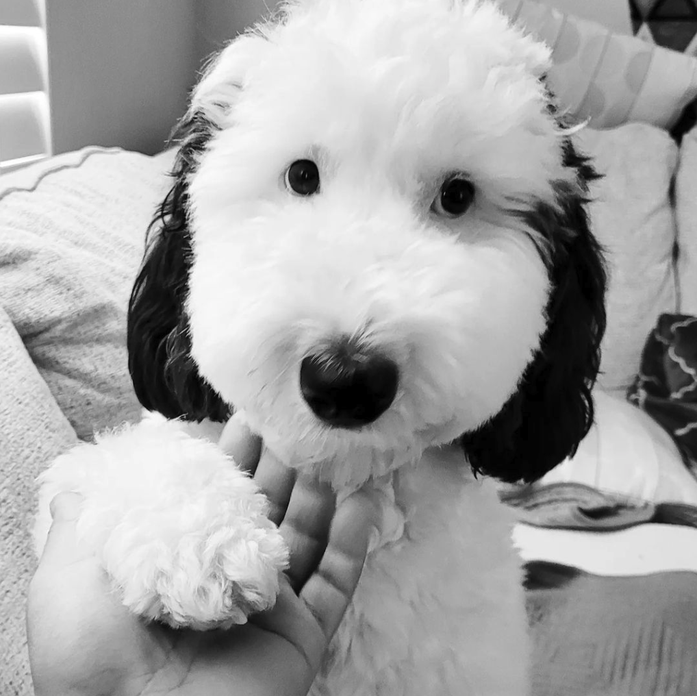 Bayley is a mini sheepadoodle, a cross between an old English sheepdog and a miniature poodle. The hybrid breed is known for their friendly and playful demeanor.