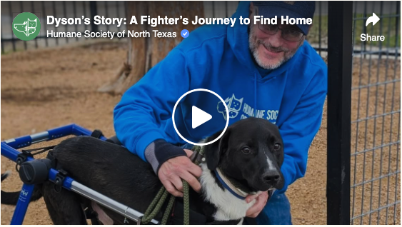 “Dyson has been through it all — pain, surgeries, setbacks,” said Cassie Davidson, senior director of marketing, communications and public relations at the Humane Society of North Texas. “At one point, we even thought he might lose a leg — or both.”
