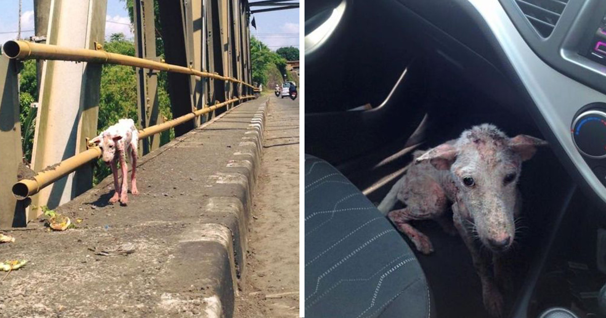 When an emaciated stray dog with mange and severe sunburn was wandering the streets, she knew she didn’t have much time left. No one would stop to help her, so she took it upon herself to find a way to be rescued.