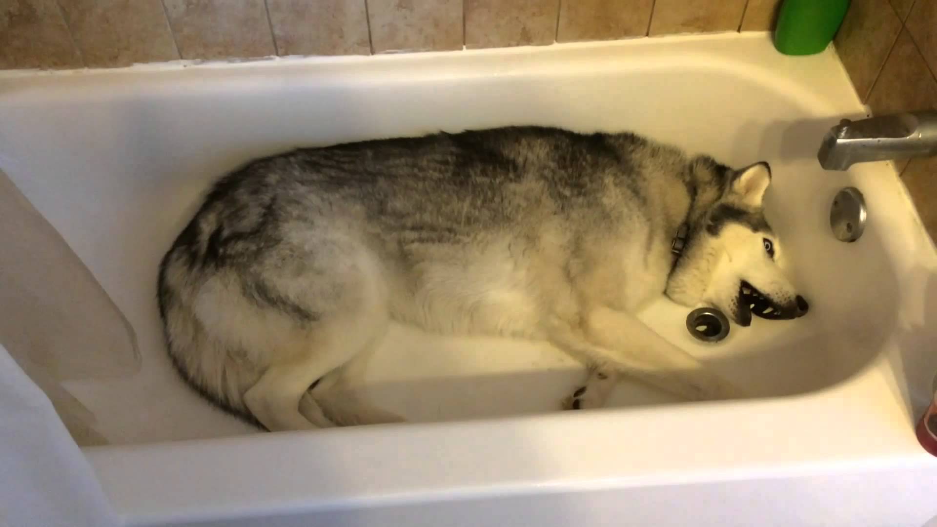 Check out the hilarious video on the next page as Zeus the Siberian Husky throws a temper tantrum in the bathtub!