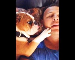 Little puppies often have fragile hearts which make them constantly seek affection from their owners. The Bulldog puppy in this video is no different, as she keeps asking her dad…