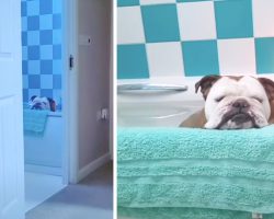 It turns out dogs like bubble baths as much as humans! Maybe even more… 😉 Four-year-old Bulldog Pumpkin knows how to sit back and relax and take it all in…