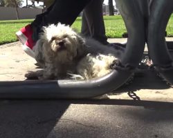 Hope For Paws received word of a homeless dog in central California and made the three-hour trip to rescue him. The poor thing had been living alone in the park…