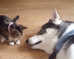 Shelter Aids This Traumatized Husky’s Rehabilitation and Finds a Foster Mother for Her