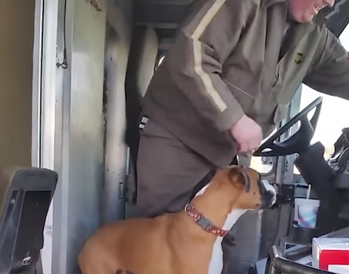 At first Jordan was confused as to what his pup was doing, but then he realized the UPS driver was definitely a dog person!