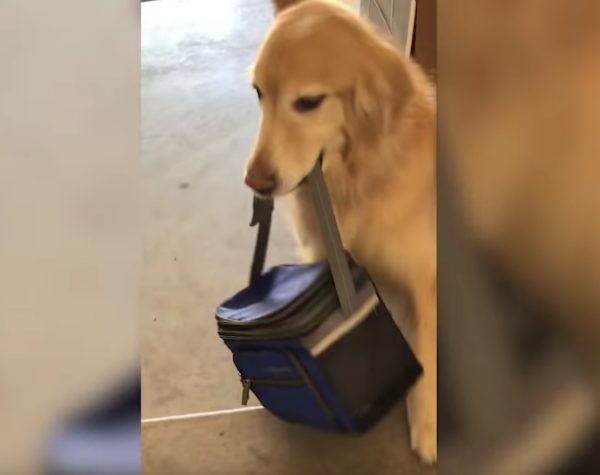 This pooch is so happy to have his dad home. He even carries the tote bags with the straps in his mouth, eager to be the best assistant possible. Totally “awwwww” worthy!