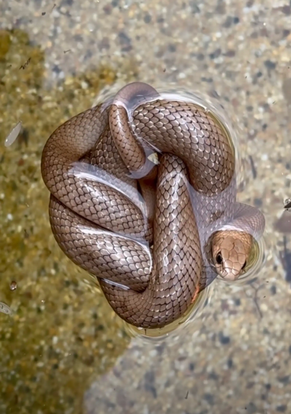 Instead of frantically swimming — which would have quickly led to exhaustion and drowning — the snake had tied her own body into a tight knot, forming a kind of living raft. The clever maneuver allowed her to stay afloat with her head above water while conserving precious energy.