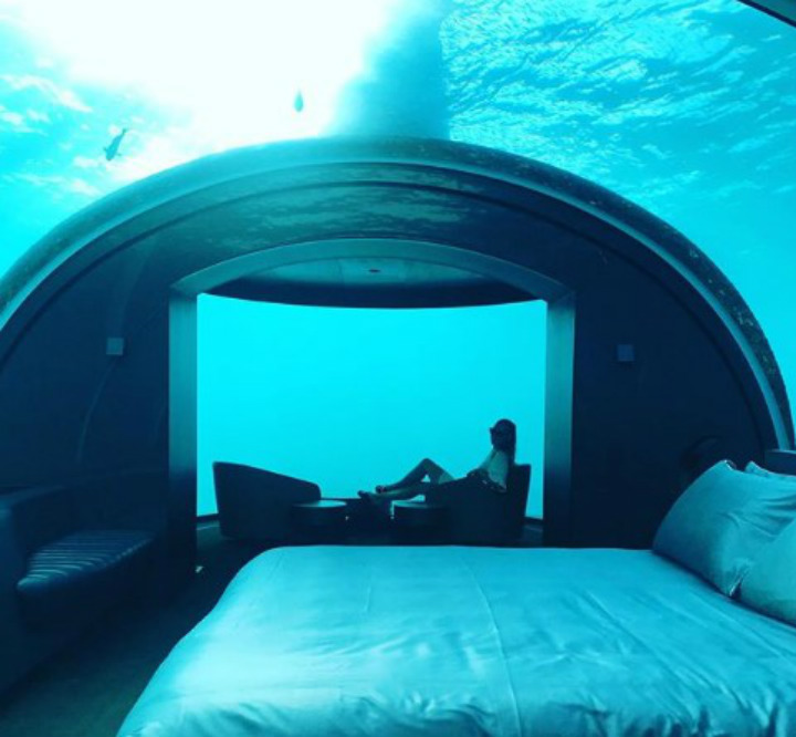 If Sebastian the Crab didn’t convince you that it’s better down where it’s wetter, just have a gander at this underwater paradise. Built sixteen feet beneath the warm surface of the Indian Ocean in the island nation of Maldives, the Conrad Maldives Rangali Island has built the world’s first hotel suite that’s completely submerged.