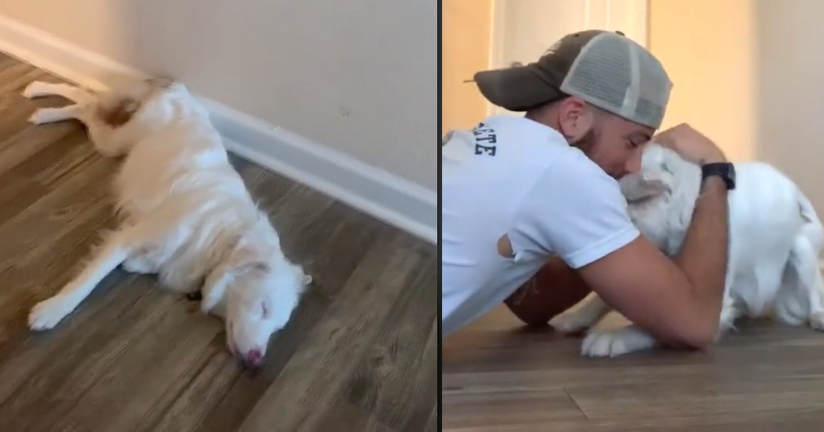 “People ask me how I wake up my deaf and blind pup without scaring her,” Aiden said in a caption to the clip. “I slightly blow on her. She still gets startled until she feels me. Then she wants all the love.”