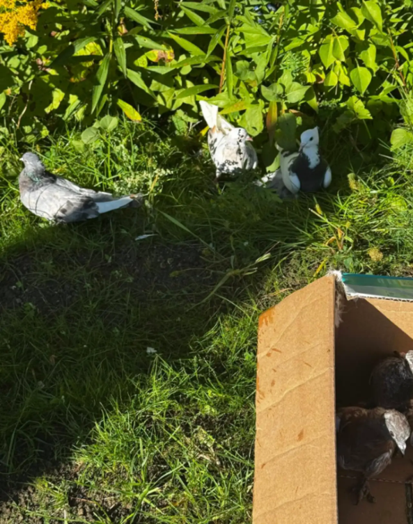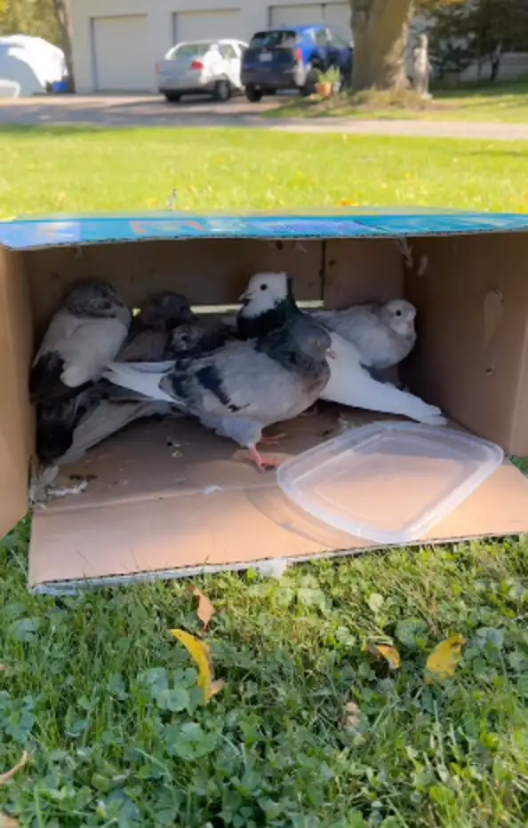 Soon after, a Vaughn Animal Services officer explained that the pigeons were likely racing or exhibition birds, bred for competition but now discarded once no longer “useful.” One of the larger pigeons even wore a tag on his leg — proof that he’d once been owned.