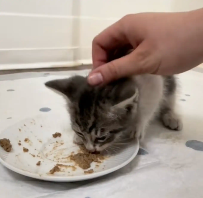 Siena gently scooped the kitten up, wrapped her in her shirt, and brought her inside. Once safe and warm, she cleaned the crust from around the baby’s eyes and offered her some leftover food she kept for neighborhood strays.
