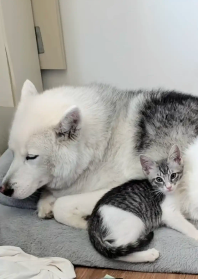 Now named Ashtray, the once-lonely kitten fits right in with her new furry siblings — cuddling with her cat and even the family dog.