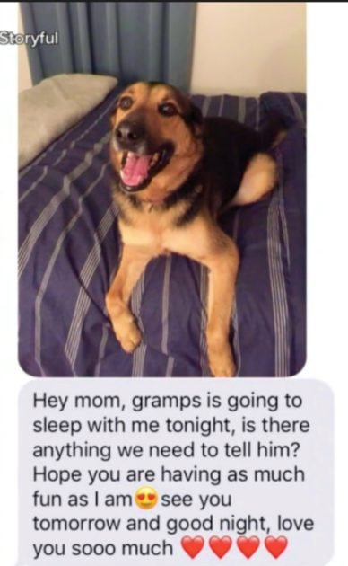 Larry and his four-year-old German Shepherd “grandson” had a blast together. Meghan’s dad sent plenty of ADORABLE text messages to keep her updated on their time together.