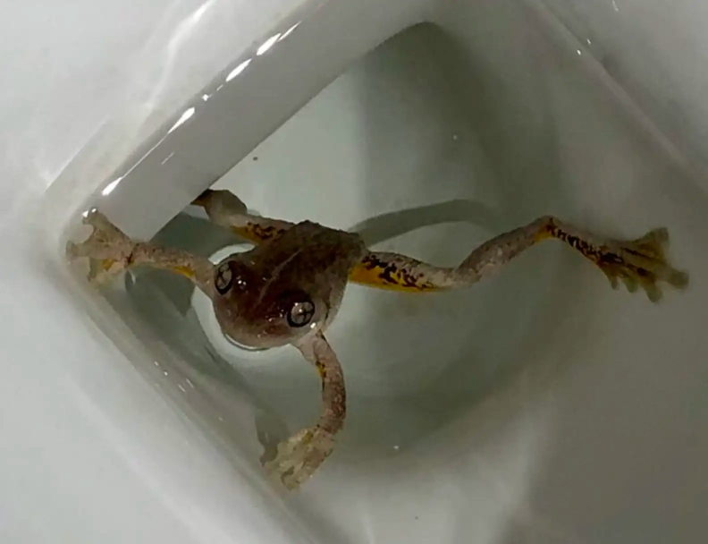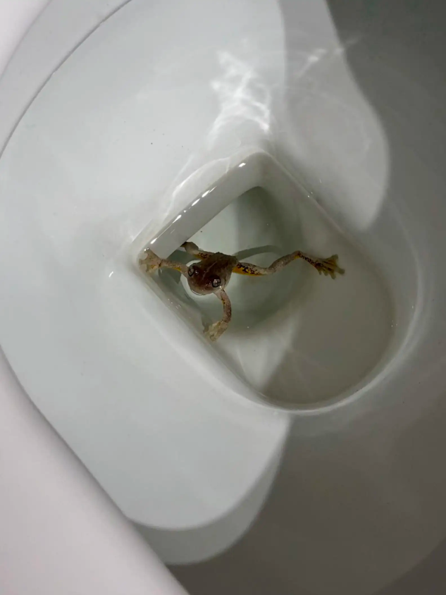 “My house is surrounded by littoral rainforest, and we often find froggies hopping about the place,” Drolz told The Dodo. “It’s likely that Stanley wandered into the bathroom one day when the lid was up — and decided the toilet was the safest spot from predators.”