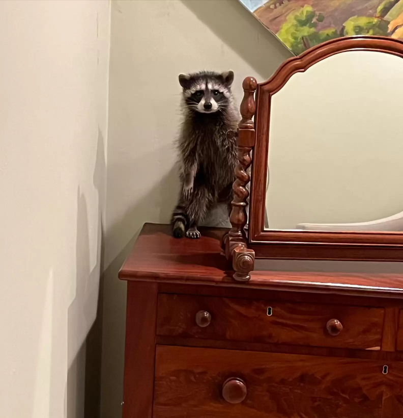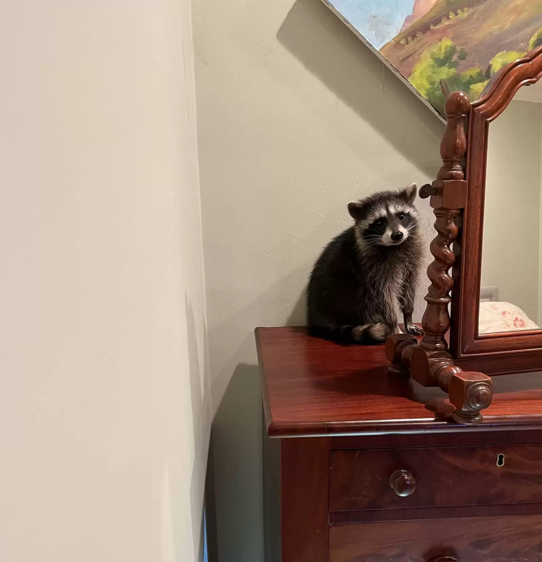 “We walked into the bedroom, and it looked like someone had thrown a total tantrum,” Burton told The Dodo. “There was stuff knocked everywhere — and the raccoon just sitting there like it was no big deal.”