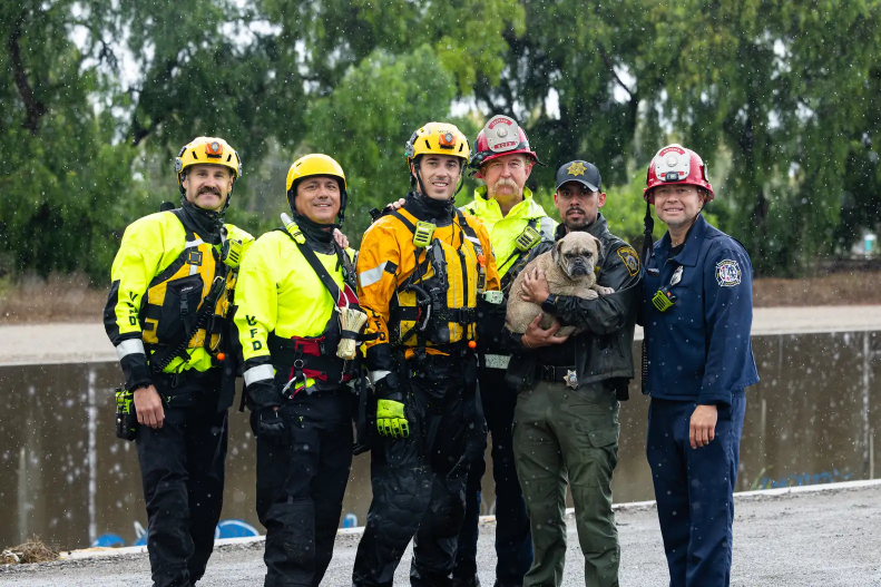 As heavy rain poured over Camarillo, California, a crew from Ventura County Public Works was monitoring a flooding canal when something unusual caught their eye.